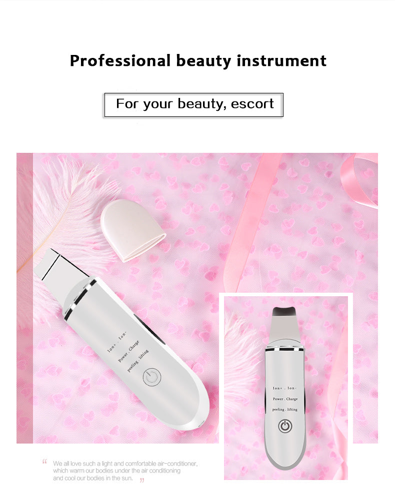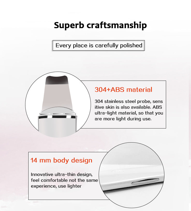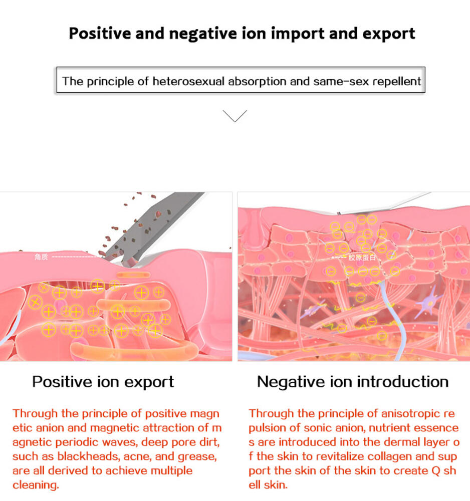 Prin adoptarea teoriei vibrațiilor ultrasonice și a efectului de căldură, poate promova circulația sângelui în interiorul dermei, accelera returnarea limfatică, toxinele de descărcare care se acumulează în pielea mai adâncă și elimina celulele moarte pentru a evita acumularea excesivă a celulelor Corneouslayer, astfel făcând umezeală și nutriția transferată rapid celulele penetrabilitatii, întăresc absorbția de îngrijire a pielii, îmbunătățesc umiditatea pielii. Îmbunătățește tenul, textura pielii, elimina întunericul și albirea pielii.
