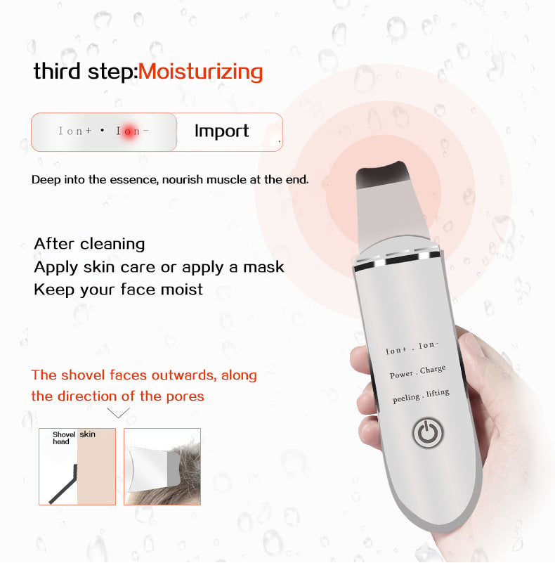DETAȘARE - vibrația detașează particulele fine de murdărie de pe suprafața pielii și purifică pielea. [Ușor de utilizat, potrivit cu produse de îngrijire a pielii] Când utilizați acest scruber pentru piele derma, modul Cation Export/Anion Import: utilizați un prosop fierbinte, un aburi facial și loțiuni derivate pentru a ajuta la deschiderea porilor. În modul microcurent, poate fi folosit împreună cu ulei esențial, cremă de față, astfel încât să puteți obține cel mai bun efect.
