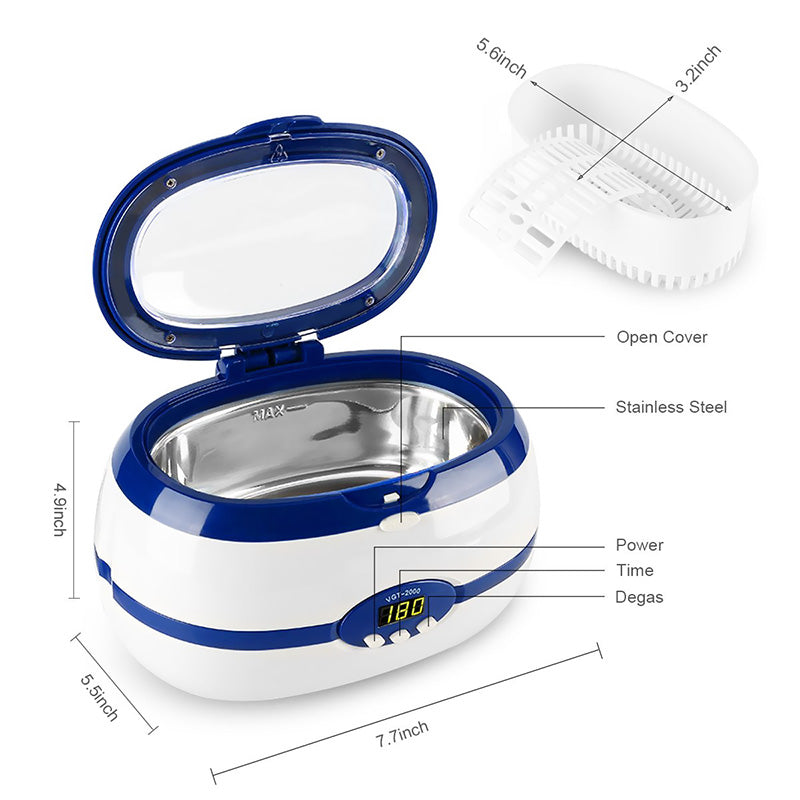 Uneori poate elimina chiar si rugina.Aparat de Curatare si Dezinfectare foloseste ultrasunele pentru a indeparta microbii si are un timp defunctionare la alegere:90s, 180s, 280s, 380s,480s,. Sterilizator cosmetica ieftin poate igieniza produse din metal si plastic ce pot fi acoperite cu mai 600 ml.