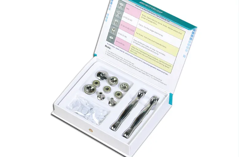 Diamantul din vârful microdermabraziunii este de fapt mii de particule minuscule de diamant de dimensiuni uniforme. Aparatul de microdermabraziune cu diamant are o varietate de dimensiuni diferite. Utilizarea corectă a capului de diamant depinde de starea pielii individuale a pacientului: 100 este, desigur, pielea; piele normală 200; piele sensibilă 300.