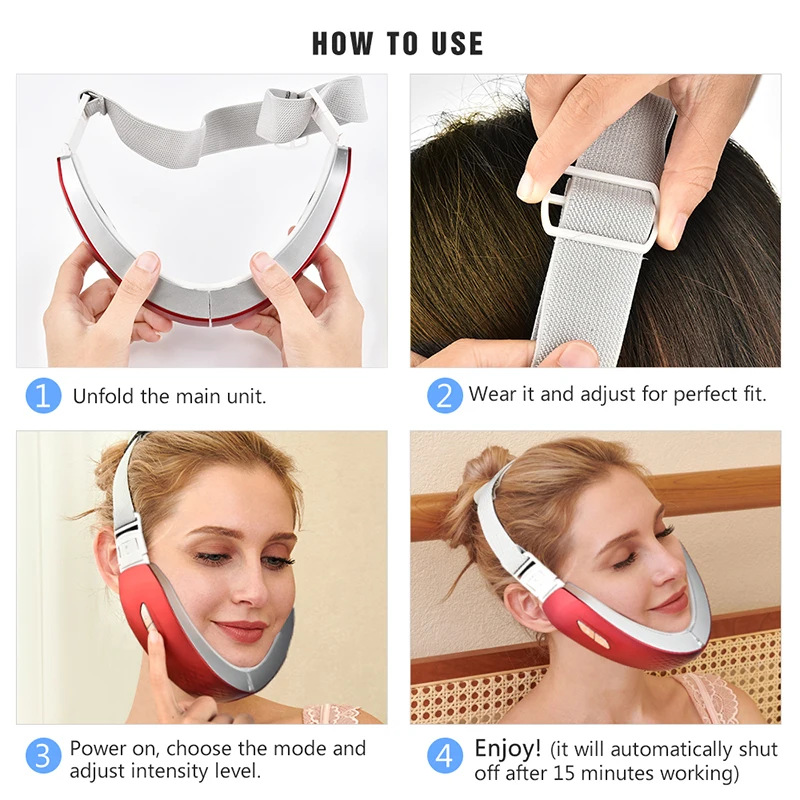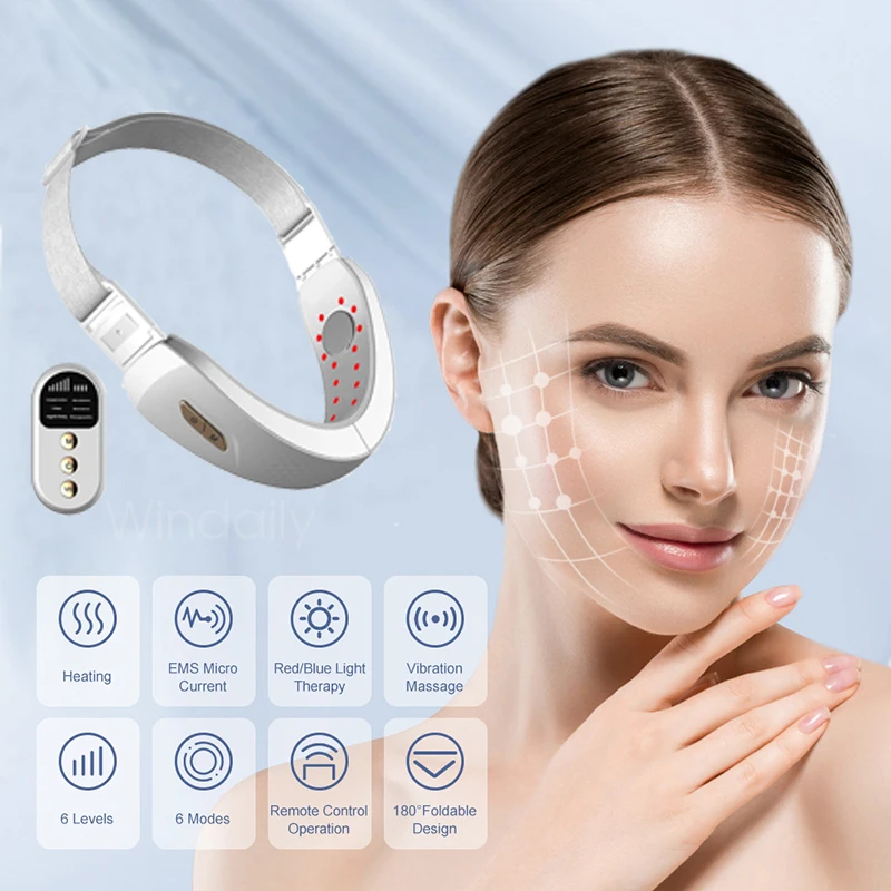 Aparat Inteligent de Ridicare a Fetei si indepartarea barbiei Duble cu Vibratii in Infrarosu EMS V centura de lifting facial, 8 Tipuri de Masaj cu Microcurenta Dubla pentru Reducerea Barbiei, Anti-umflare, lifting facial