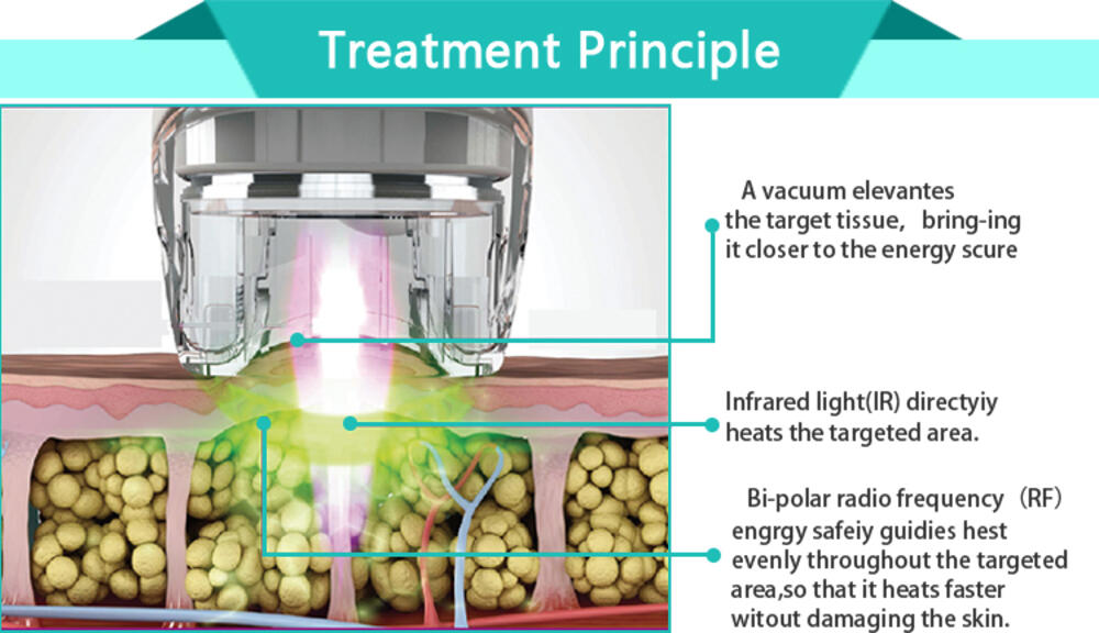 Combinarea IR, cu vacuum și Radiofrecvență încălzește în profunzime celulele grase (adipocitele), țesutul înconjurător și fibrele de colagen. Designul optim al electrozilor și aplicarea vacuumului permite penetrarea mai rapidă și profundă a căldurii în piele. Astfel, se stimulează circulația, drenajul limfatic, metabolismul celular și depozitarea de colagen. Se intensifica și activitatea fibroblastelor și se remodelează matricea extracelulară. Rezultatul: reducerea laxitatii pielii, volumului și îmbunătățirea generală a aspectului pielii.