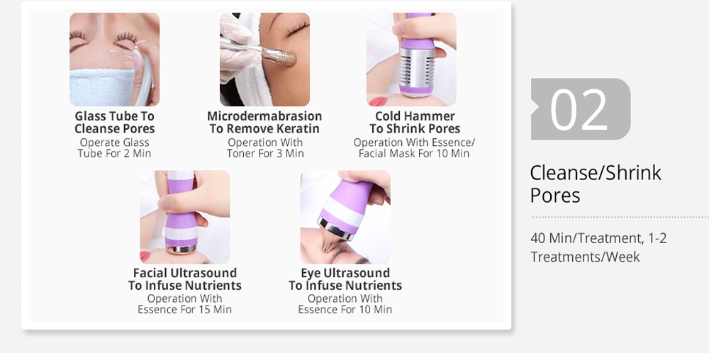Nutrienții, principiile active sau produsele cosmetice pot fi introduse în flaconul cu spray. Cu presiune ridicată, nutrienții, principiile active sau produsele cosmetice și oxigenul sunt pulverizate pe piele, ceea ce îmbunătățește considerabil nutriția pielii, prin absorbția maximă, curățarea pielii și intinerirea pielii.