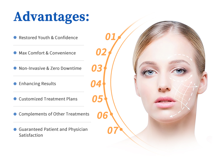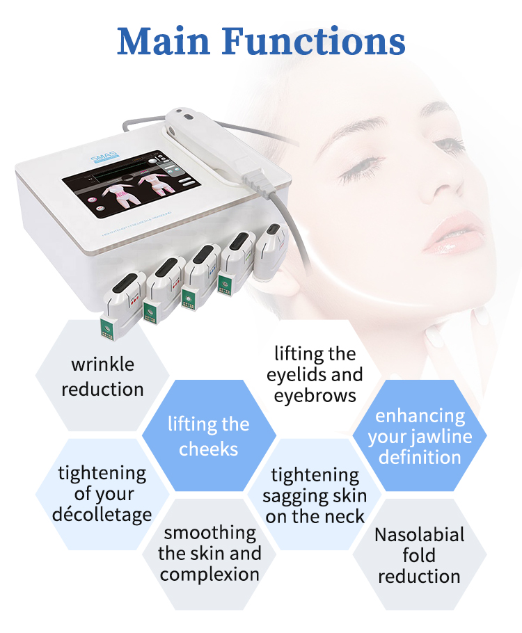 2. Folosind cea mai nouă tehnologie cu ultrasunete pentru a transmite ultrasunete concentrate cu energie înaltă către piele, direcționează stratul SMAS subcutanat, îndepărtează ridurile;
