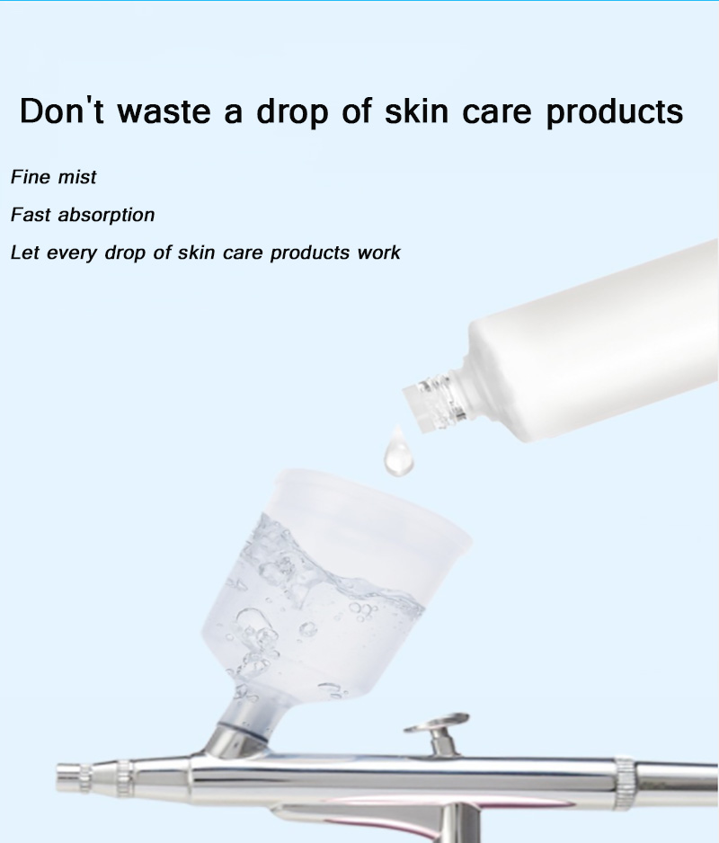 Spray cu oxigen: Modelele brevetate ale instrumentului de injectare cu oxigen și de completare cu apă pot fi utilizate pentru a pulveriza produse cu ingrediente active concentrate pentru a hidrata pielea și a reduce deșeurile cosmetice.
