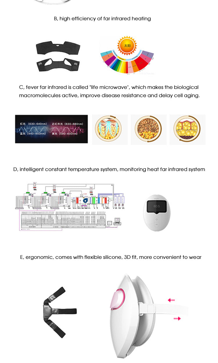 1. Lumină LED cu spectru extrem de îngust. Ieșire stabilă. 360° fără puncte oarbe pentru a pătrunde în piele.